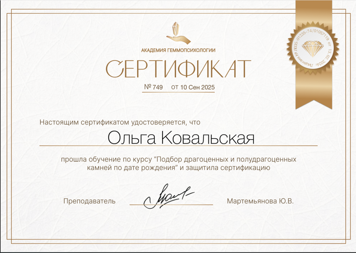 в 2023 году Академия Геммопсихологии вошла в число лучших в номинации «Народный выбор» премии лидеров онлайн образования "Getaward 2023"